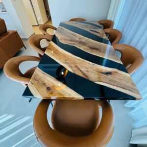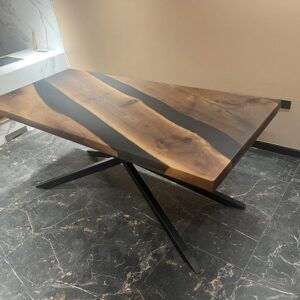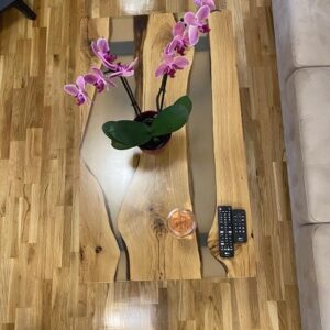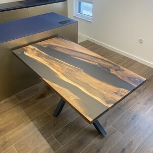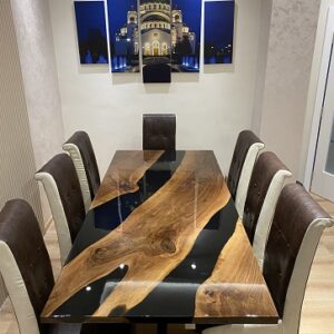 Epoxy sto predstavlja spoj punog drveta i epoxy smole, gde se prirodna tekstura drveta dopunjuje savremenim, gotovo umetničkim detaljem.