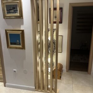 Pregrada od punog jasena, sastavljena od vertikalnih dasaka koje formiraju prozračnu strukturu između prostora.