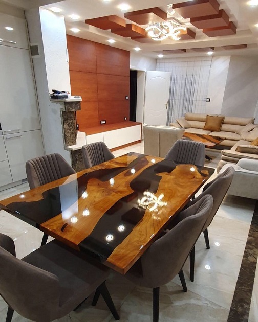 005. Trpezarijski sto – pareni orah / epoxy smola