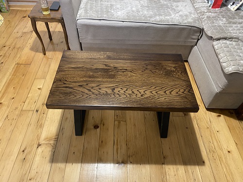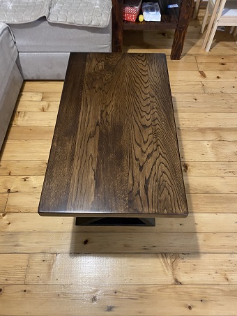 Ovaj sto predstavlja primer prethodne izrade po meri klijenta i služi kao referenca mogućeg pristupa u radu sa hrastovinom i kombinovanim materijalima.