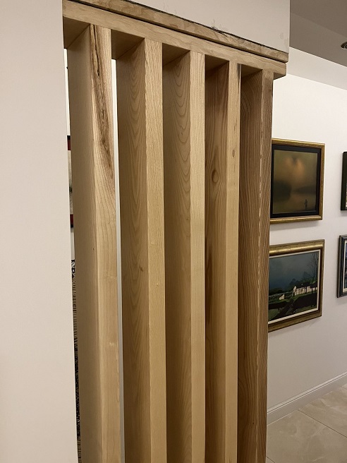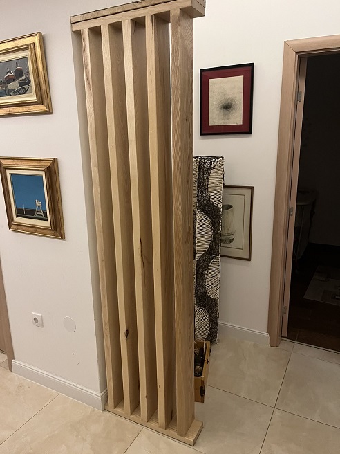 Pregrada od punog jasena, sastavljena od vertikalnih dasaka koje formiraju prozračnu strukturu između prostora.