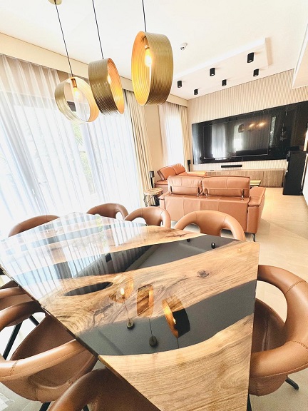 Svaki sto u našoj radionici je 100% jedinstven. Možete birati dimenzije, drvo, boju smole, vrstu konstrukcije...
