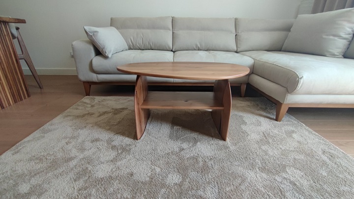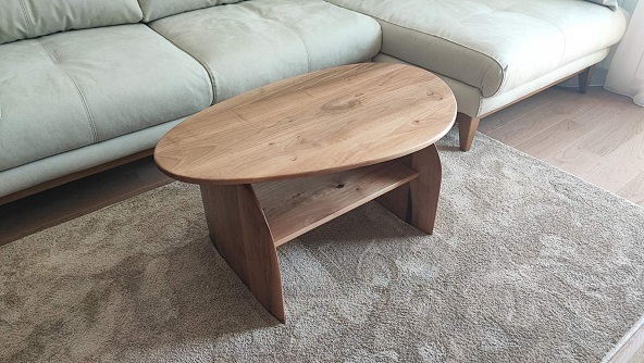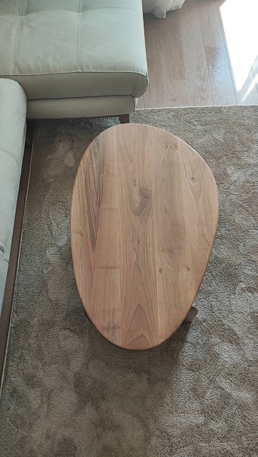 Klub sto izrađen od parenog oraha, sa pločom debljine četiri centimetra i mat poliuretanskim lakom kao završnim premazom.