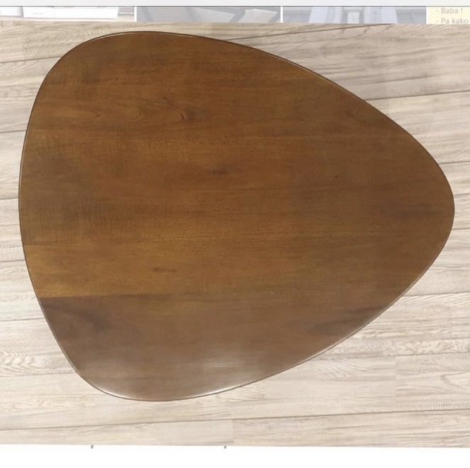 Klub sto izrađen od punog oraha, sa pločom obrađenom u bajc tehnici koja naglašava prirodni crtež drveta.