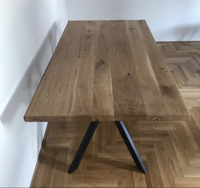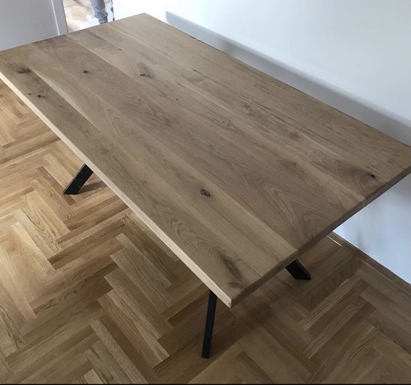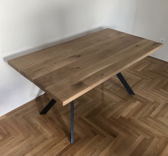 Trpezarijski sto izrađen od punog hrastovog drveta, realizovan prema specifičnim zahtevima prostora i potrebama korisnika.